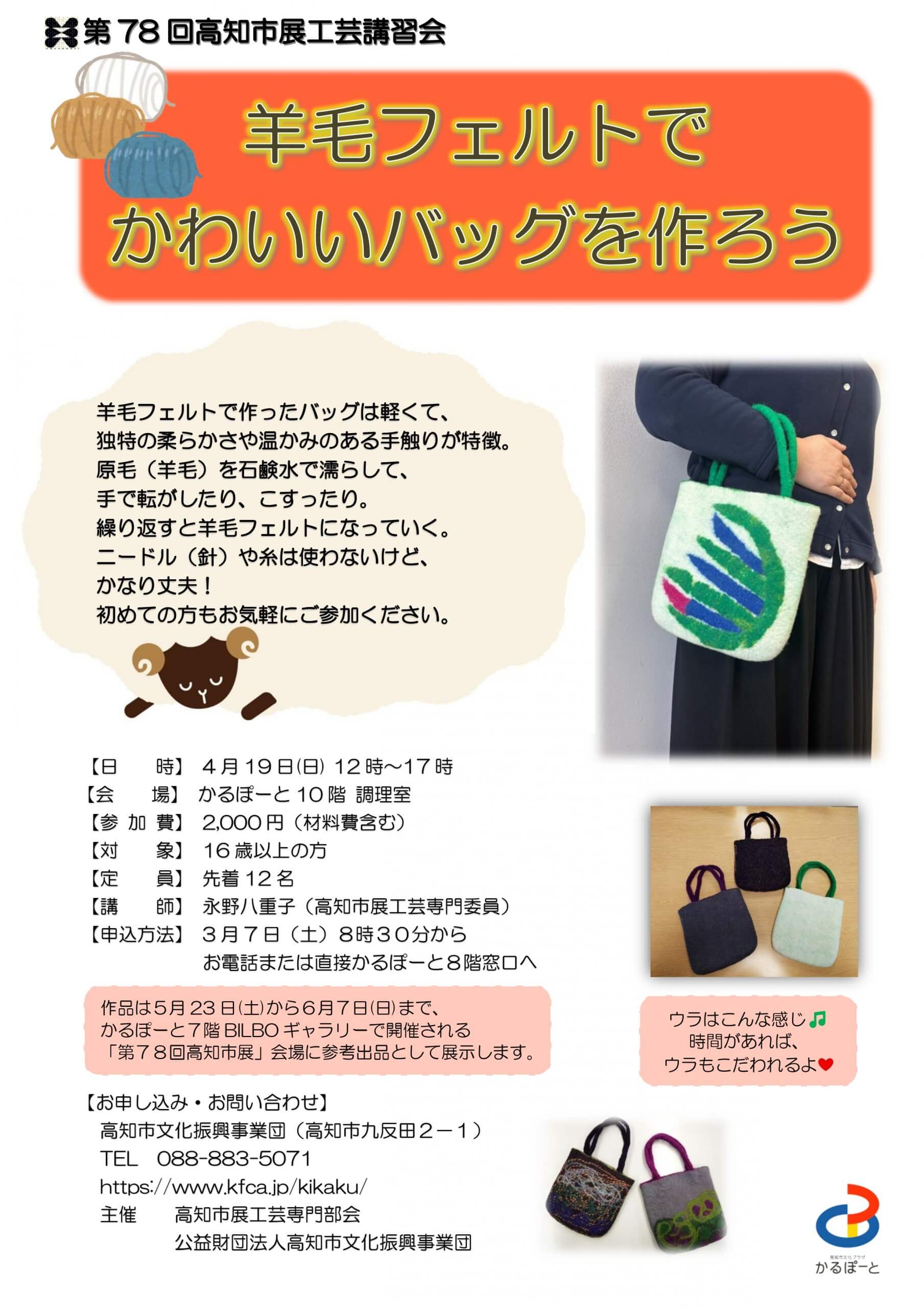 第78回高知市展工芸講習会「羊毛フェルトでかわいいバッグを作ろう」